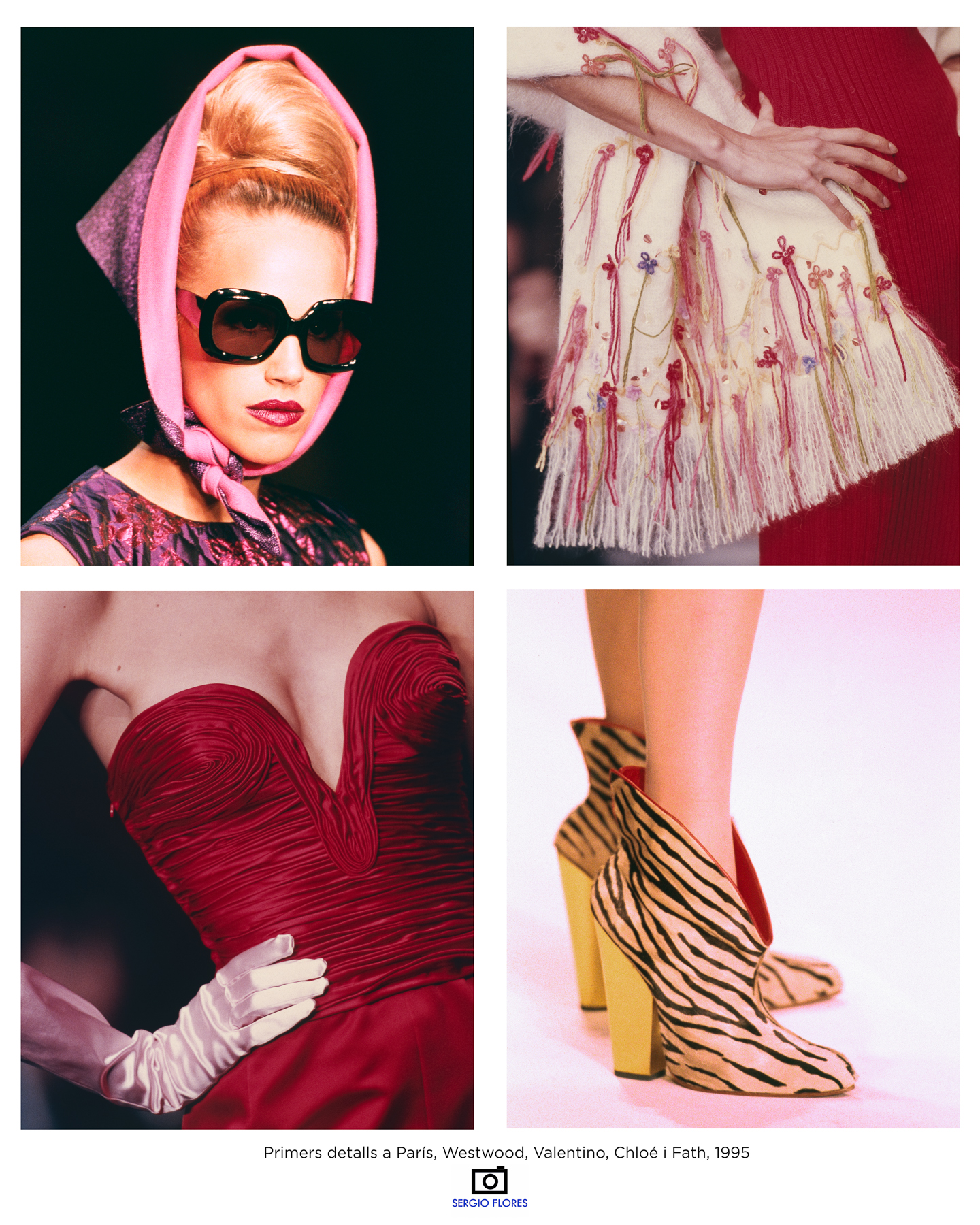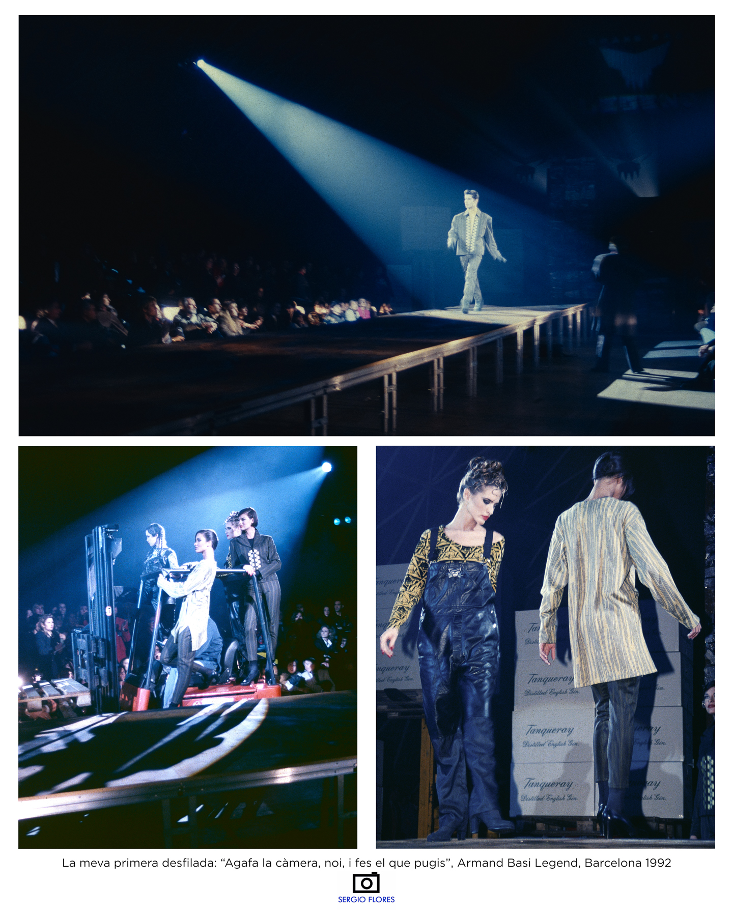 Esta exposición incluye algunas imágenes de los inicios de Sergio Flores en el campo de la fotografía de pasarela durante los años noventa, cuando trabajaba para Antoni Ruiz Aragó y para L’Estrop Produccions, cuando todavía se estaban utilizando carretes de película fotográfica, una aventura de filtros, marquetes forzados, de diapoa y la magia que rodeaba la fotografía analógica.